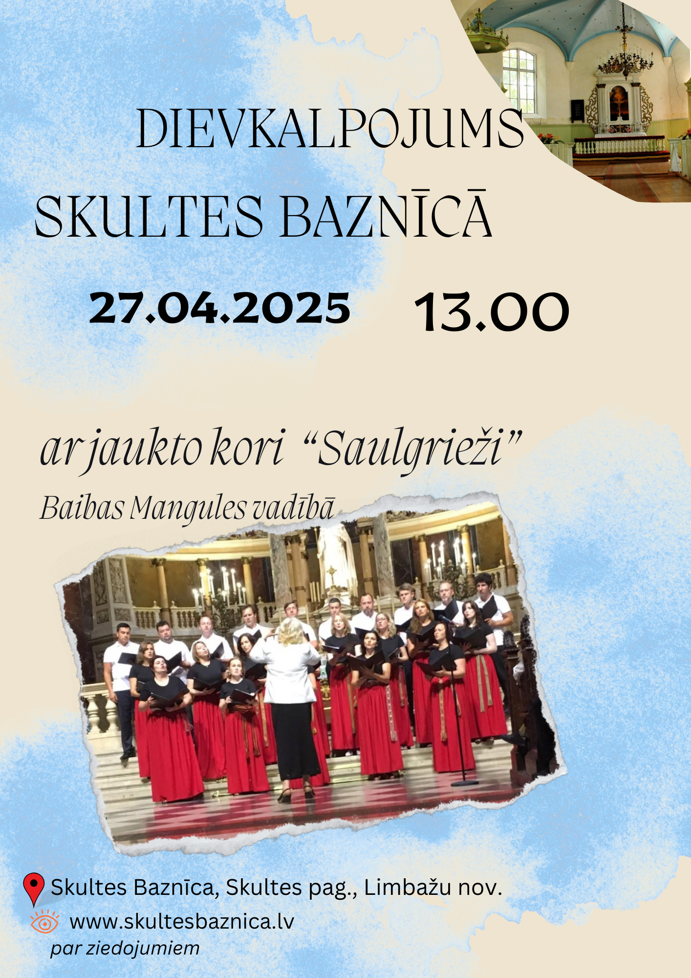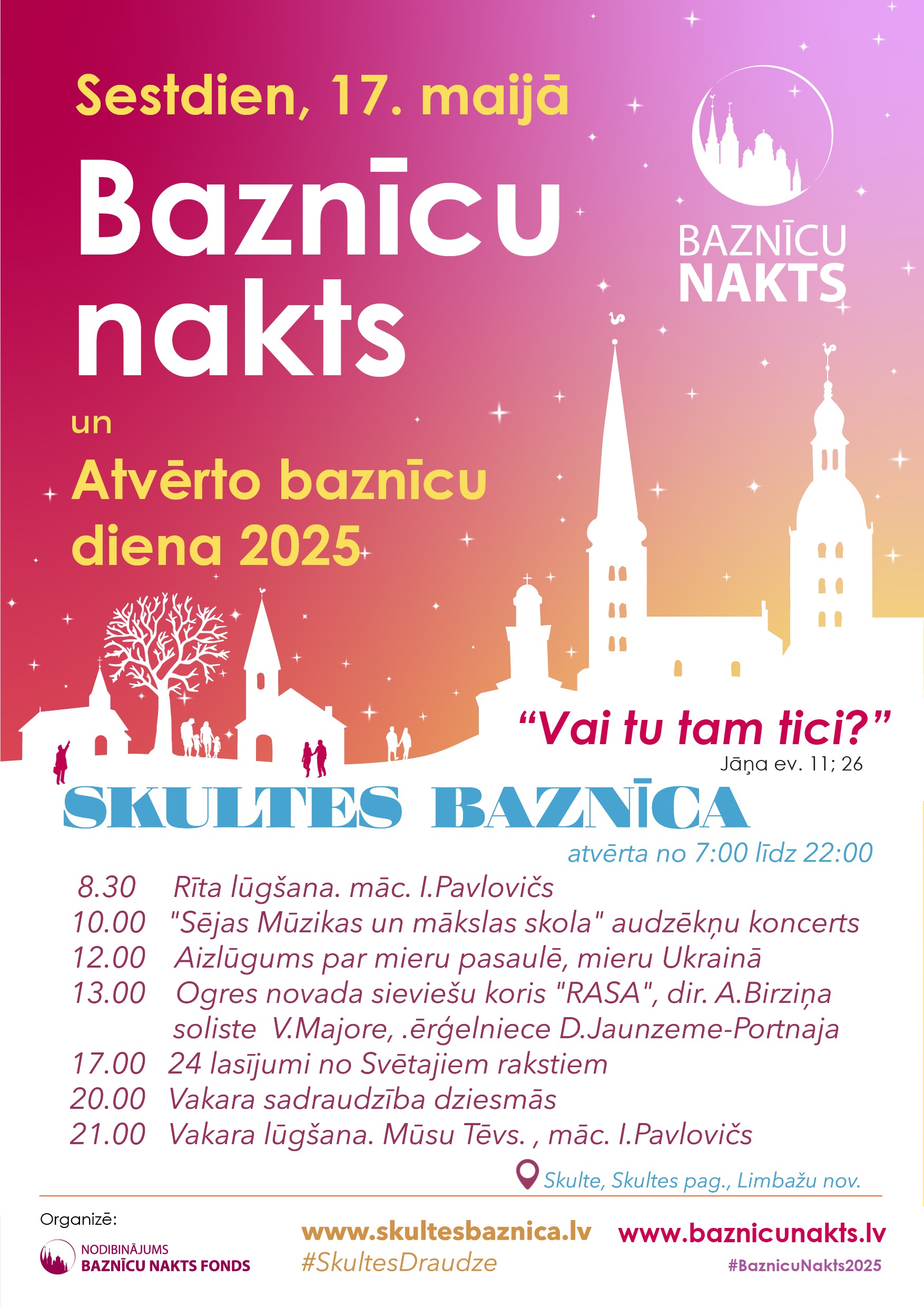 Ikviens mīļi aicināts un gaidīts, doties mūzikas ceļojumā no Renesanses līdz pat mūsdienām ērģeļu un balss skaņās Skultes baznīcā, Skultē, Limbažu nov. Mākslinieciskais vadītājs Henrijs Kalnins .
