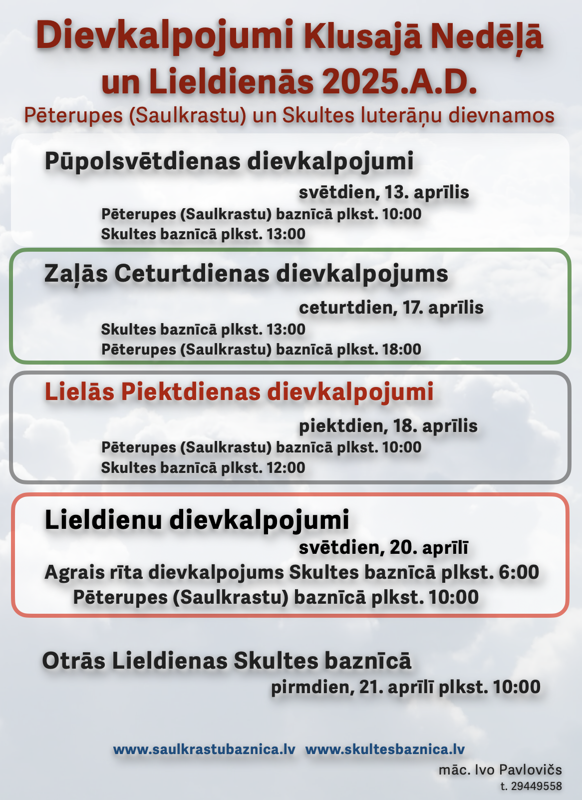Draudzes mācītājs Ivo Pavlovičs 29449558 pavlovics.ivo@gmail.com